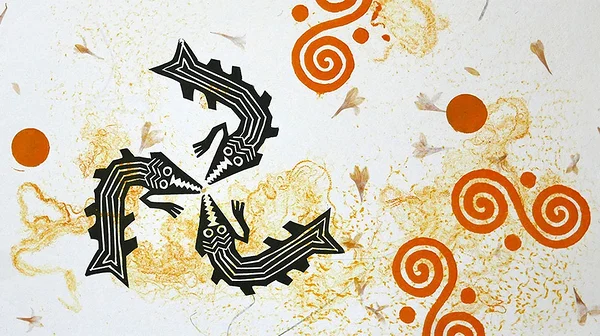 Kalli Kalde kõrgtrükitehnikas graafika on inspireeritud vanadest loomislugudest ja Lõuna-Ameerika kadunud tsivilisatsioonide kunstist. Tema rännakud viisid teda eelmisel kevadel Peruusse, mille pinnal on tõusnud ja langenud mitmed maailma vanimad kõrgkultuurid. Tööd on trükitud käsitsi valmistatud paberile, kasutatud on ka ketšua indiaanlaste tehtud banaanivarrepaberit.