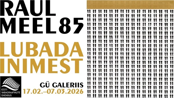 - 16. veebruar – ellepalumae Raul Meele näitus "LUBADA INIMEST" GÜ GALERIIS ARS Kunstilinnakus 17. veebruaril kell 16. Avatud kuni 07.03.2026. E--R 12--18; L 12--16 Eelmine K V A D R A A T Lisa kommentaar Email again: Nimi E-mail Kommenteeri